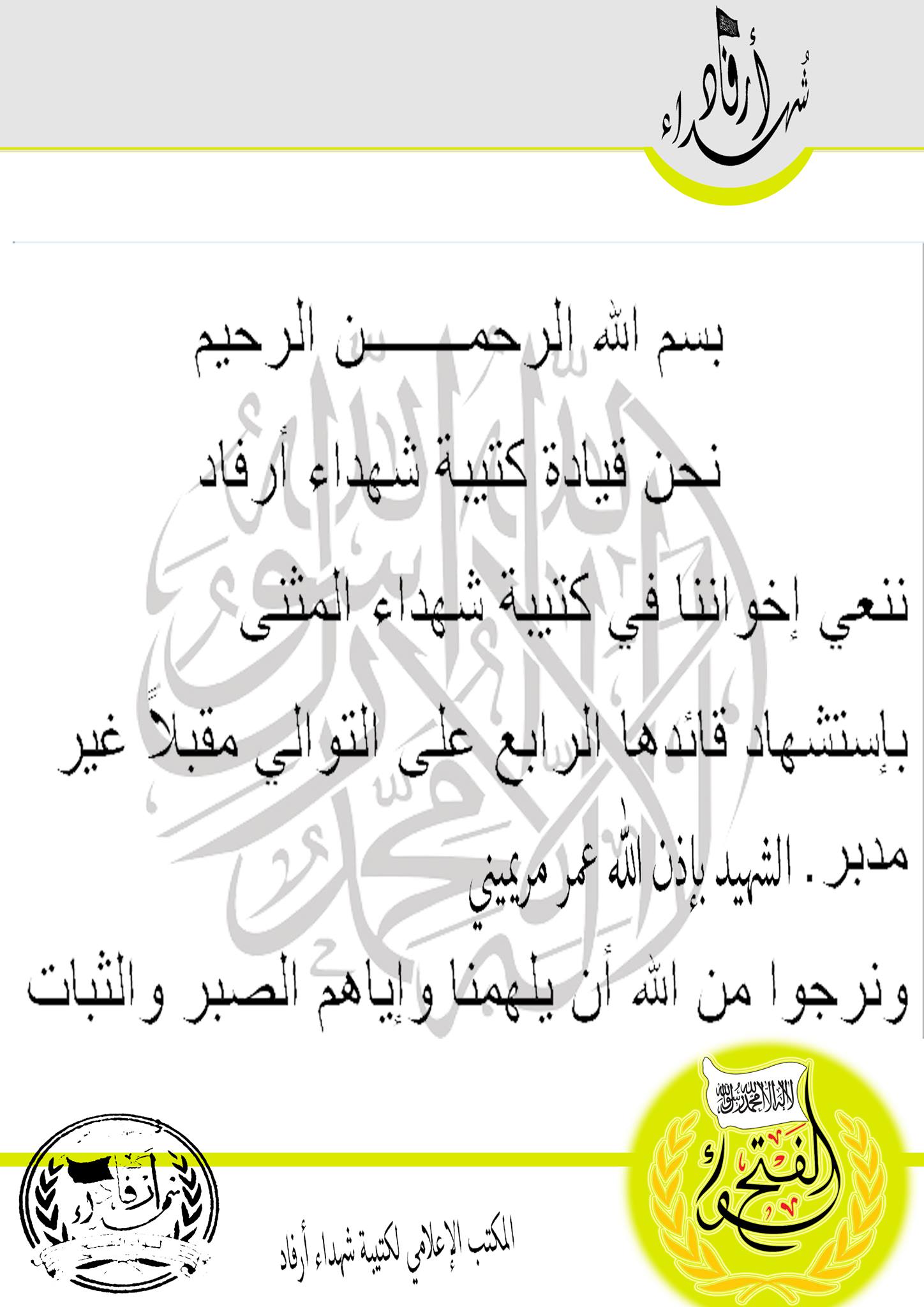 بيان تعزية من كتيبة شهداء أرفاد بعمر مريميني قائد كتيبة شهداء المثنى