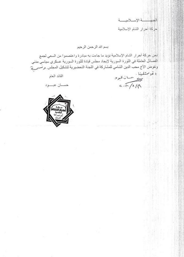بيان موافقة حركة أحرار الشام الإسلامية على مبادرة واعتصموا