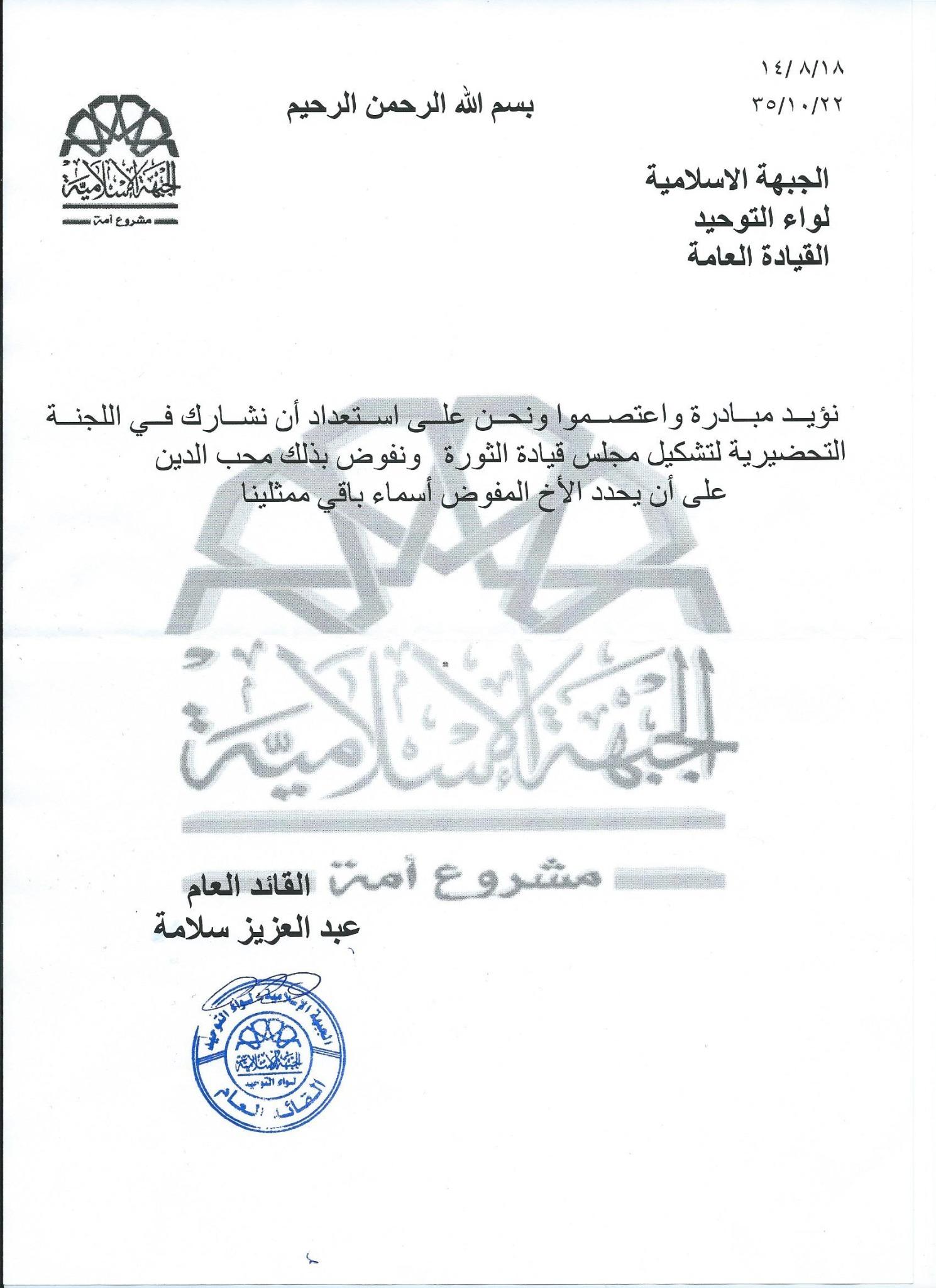 بيان انضمام لواء التوحيد في حلب إلى مبادرة واعتصموا