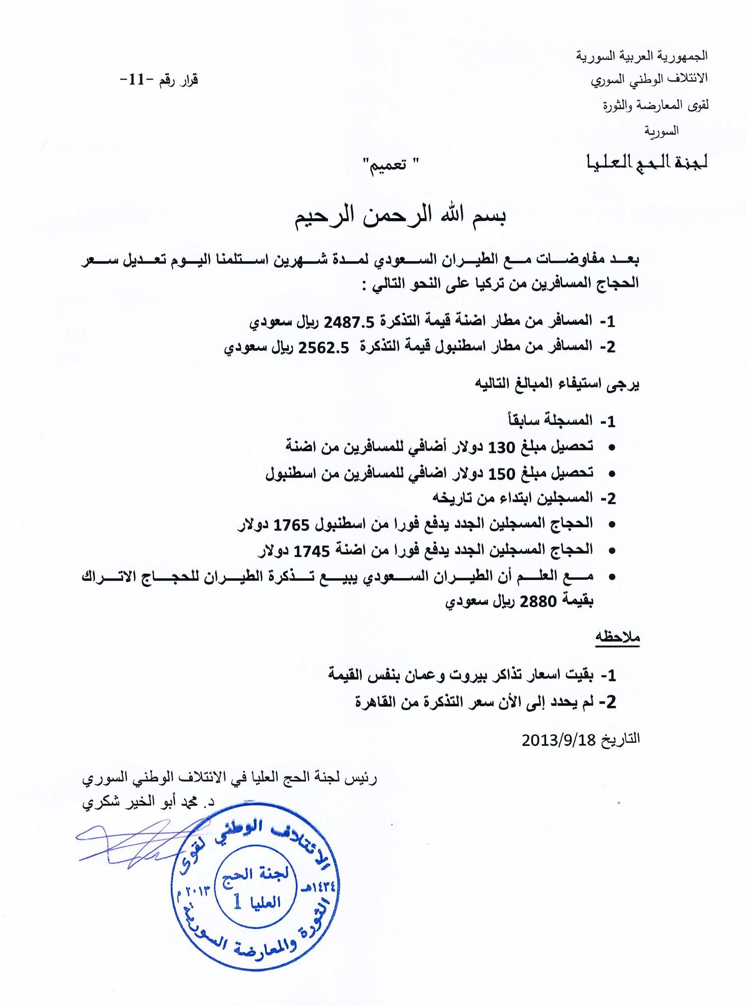 قررت لجنة الحج السورية العليا بجلستها المنعقدة بتاريخ 18/9/2014 بتعيين كل من السادة :
