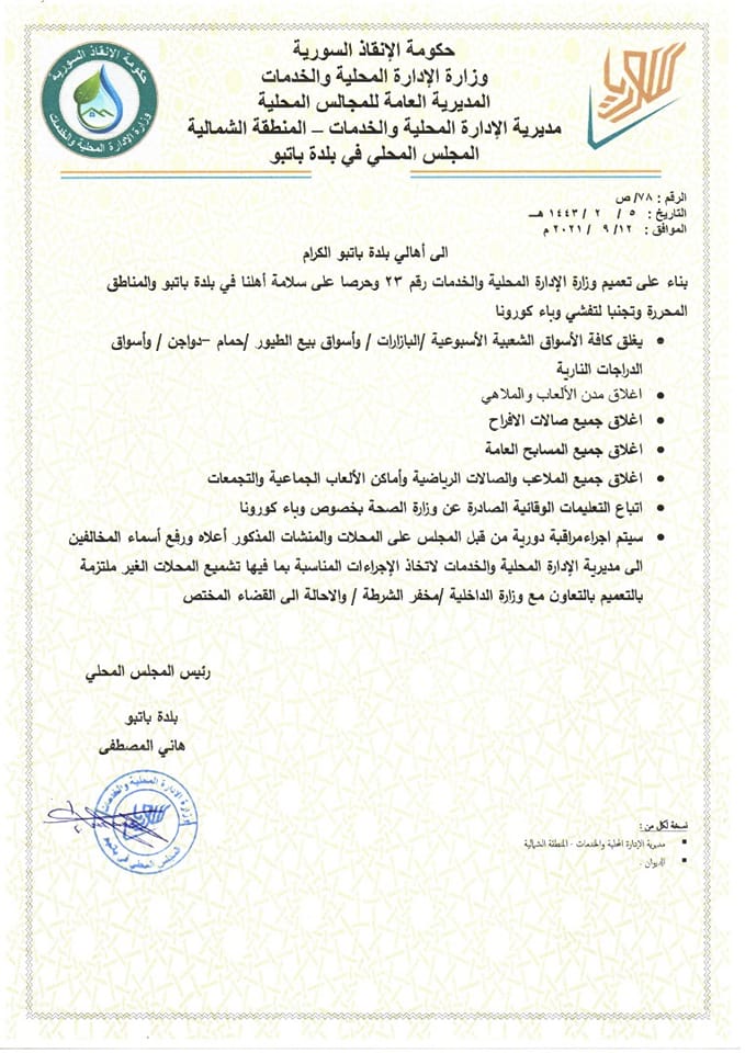 تعميم من المجلس المحلي بشأن اتخاذ بعض الإجراءات منعاً لتفشي فايروس كورونا