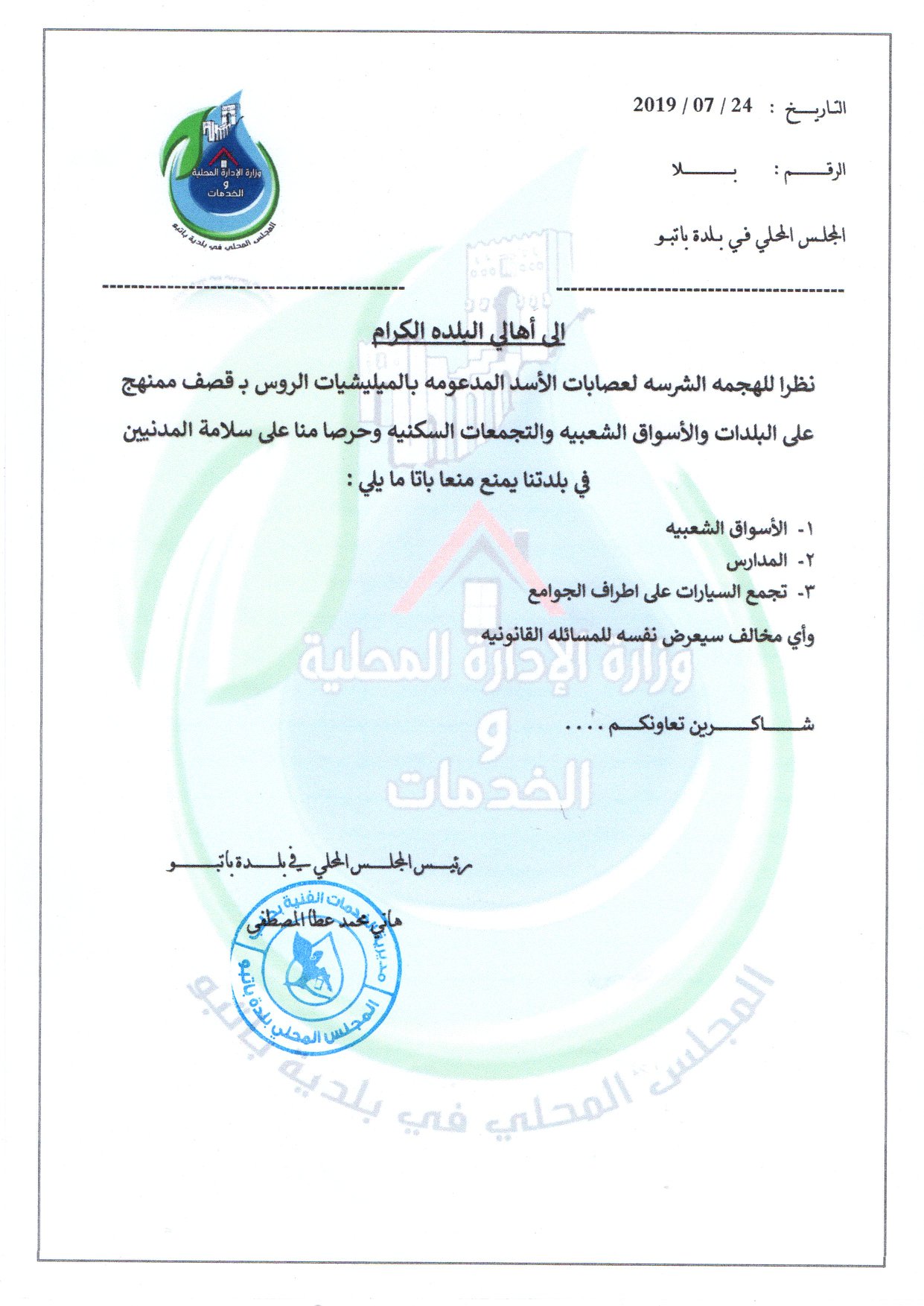 قرار من المجلس المحلي بمنع التجمعات بسبب القصف على البلدات والأسواق