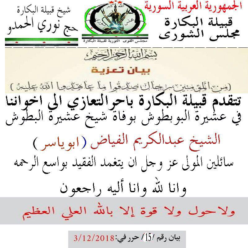 بيان تعزية من مجلس القوى الثورية لقبيلة البكارة بوفاة شيخ عشيرة البوبطوش