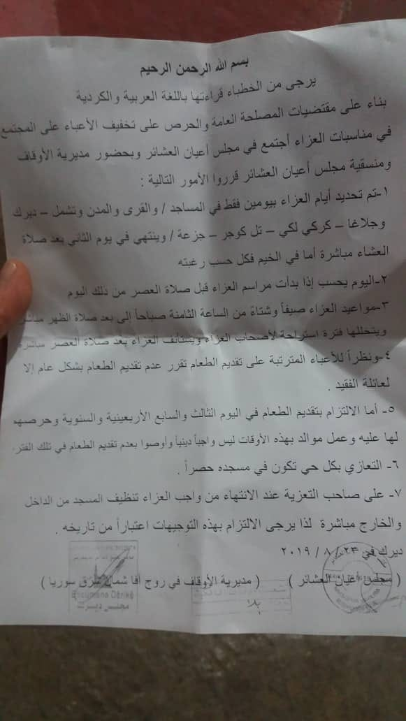 بيان من مديرية أوقاف روج آفا لتنظيم أمور التعازي وخطب الجمعة