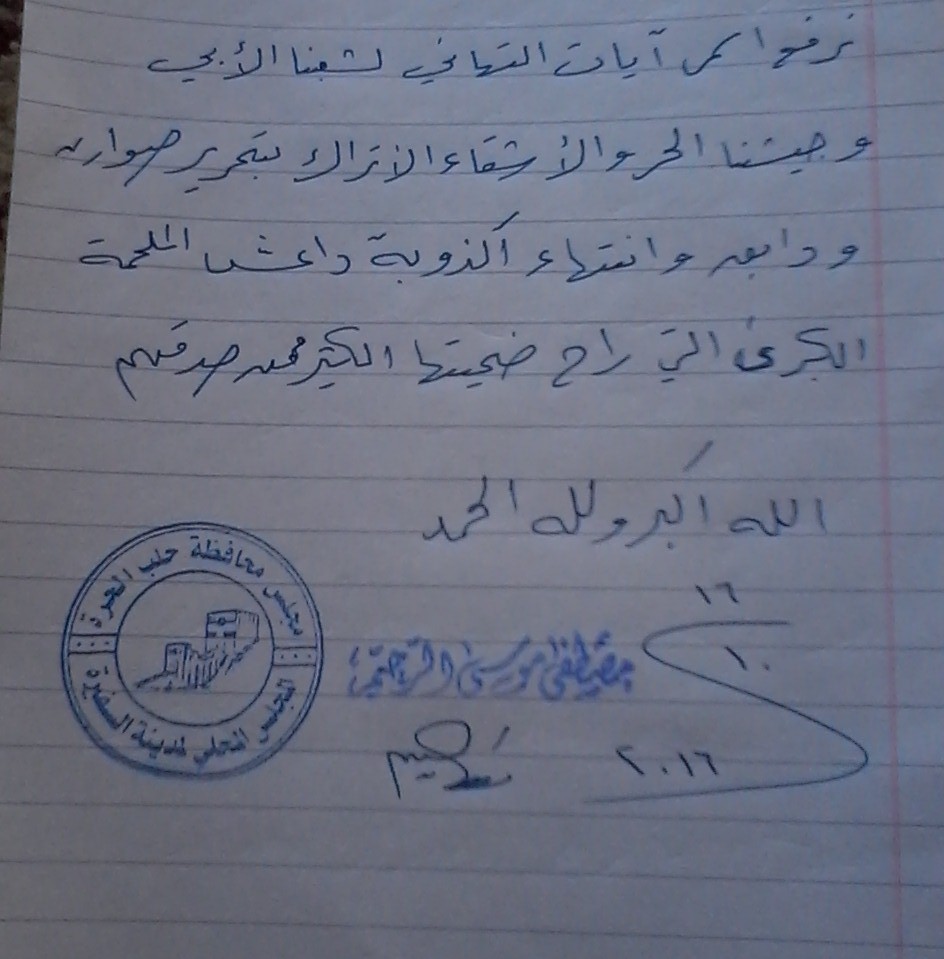 بيان من المجلس المحلي يهنئ فيه الشعب السوري والجيش الحر بتحرير صوران ودابق من قبضة تنظيم الدولة