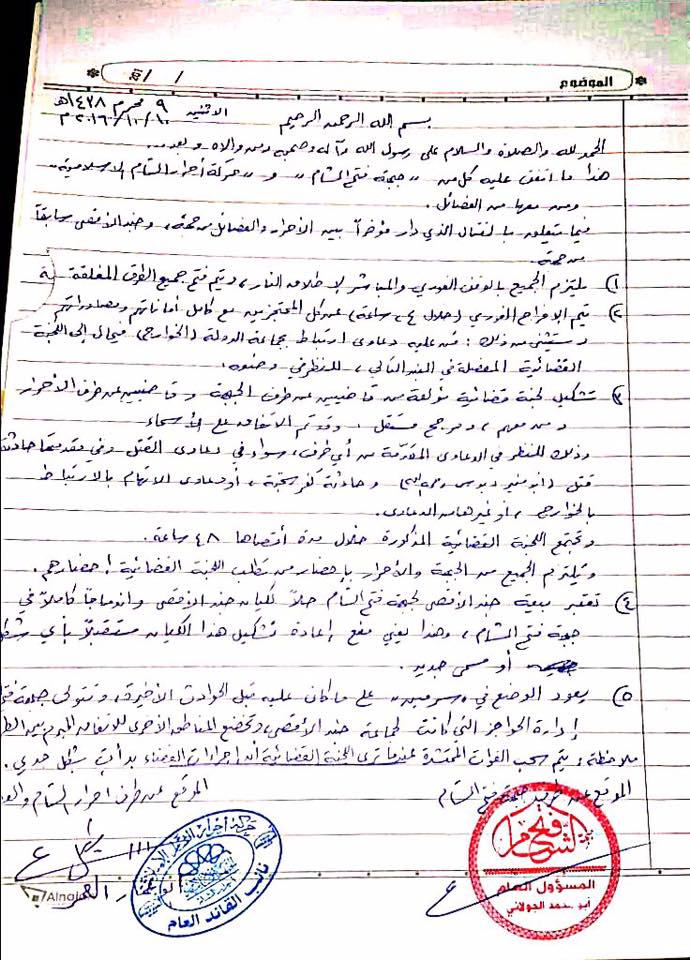 أبو محمد الجولاني (توقيع، ختم)