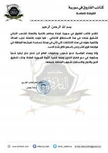 بيان تهنئة كتائب الفاروق بفوز حزب العدالة والتنمية في انتخابات 2015