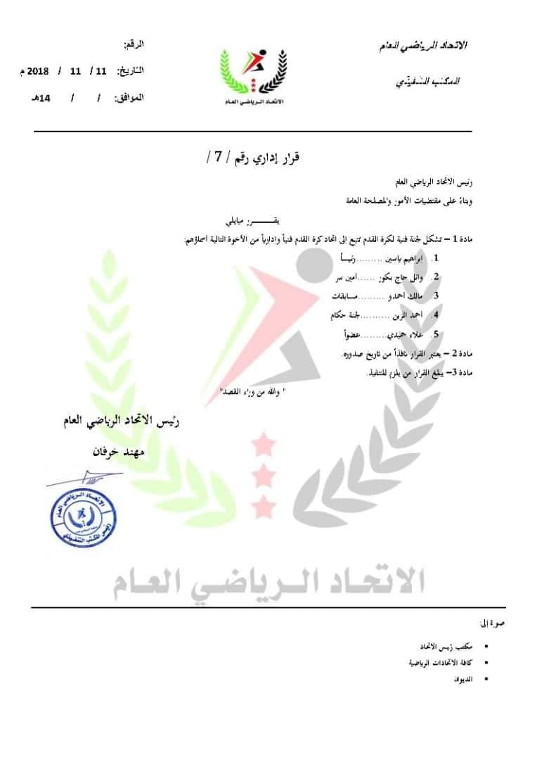 قرار من الاتحاد الرياضي العام بتشكيل اللجنة الفنية لكرة القدم