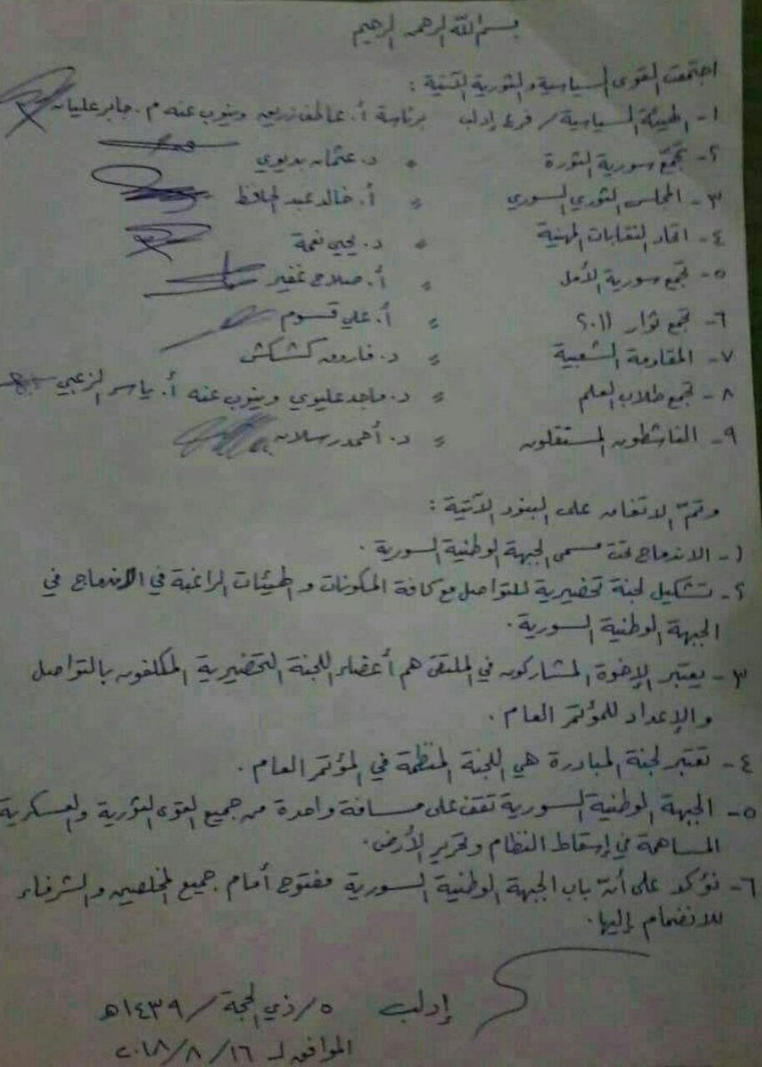 المقاومة الشعبية الثوريةتجمع ثوار 2011تجمع سورية الأملاتحاد النقابات المهنيةالمجلس الثوري السوريتجمع سورية الثورةالمجموعات