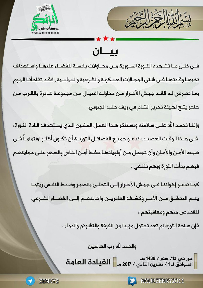 بيان إدانة من حركة نور الدين لمحاولة اغتيال قائد جيش الأحرار