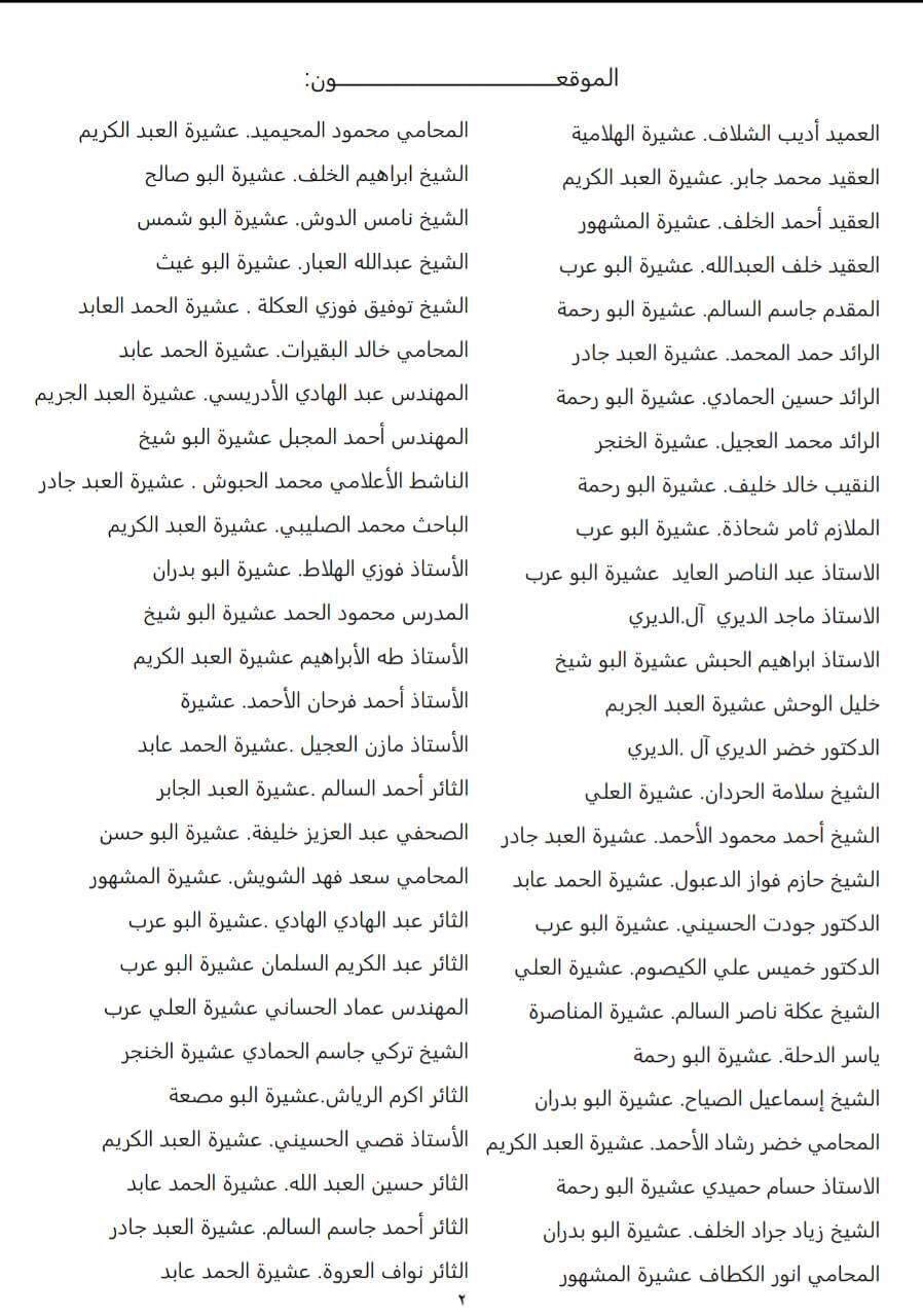 براءتنا كأبناء قبيلة عربية سنية أصيلة من هذا الشخص، ومن كل ما يصدر عنه من أفعال وأقوال،