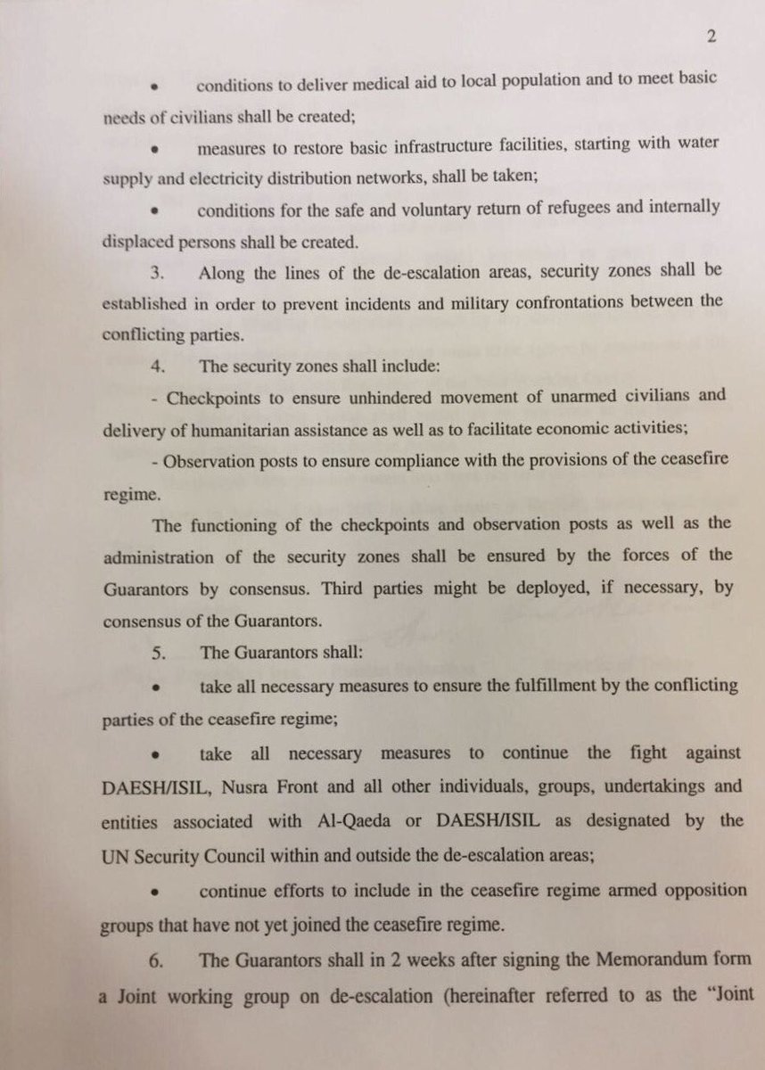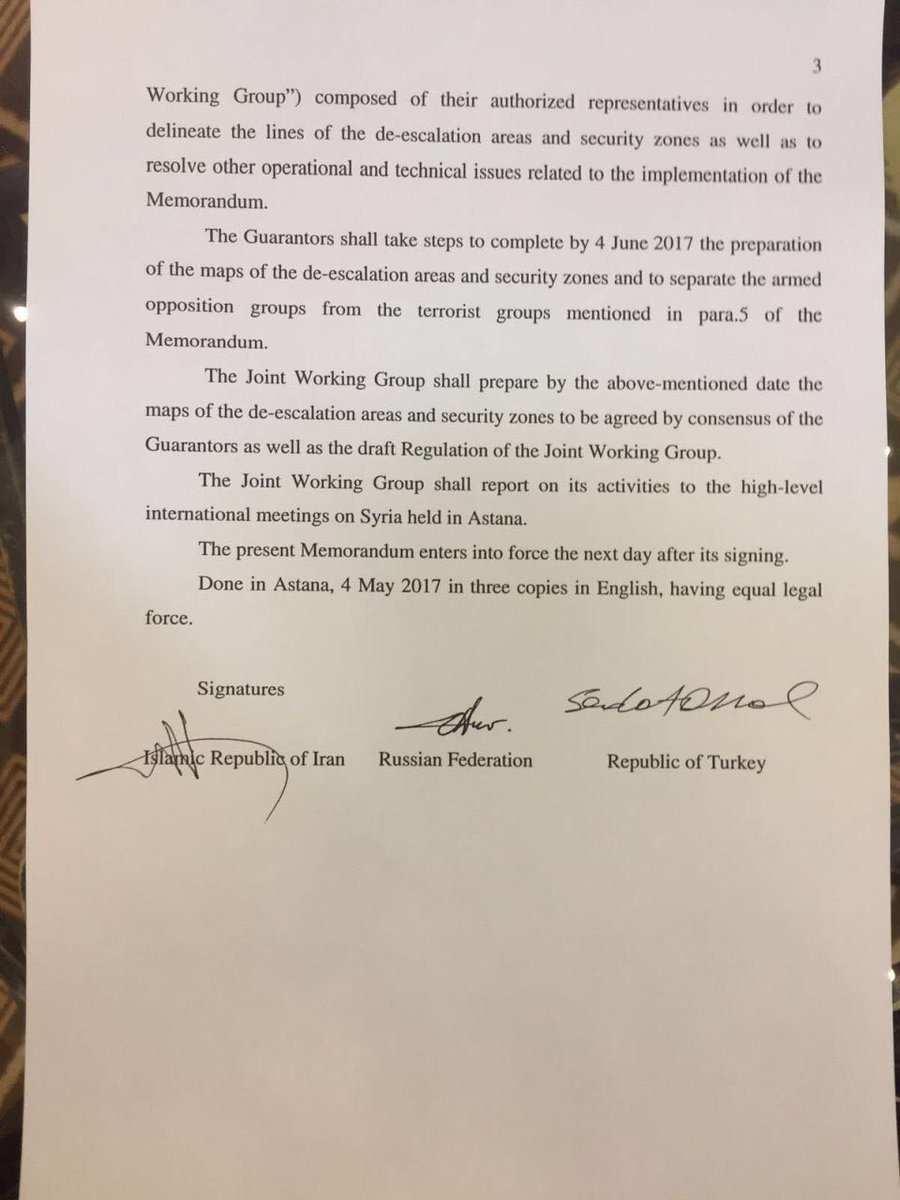 The Guarantors shall take steps to complete by 4 June 2017 the preparation of the maps of the de-escalation areas and security zones and to separate the armed opposition groups from the terrorist groups mentioned in para.5 of the Memorandum.