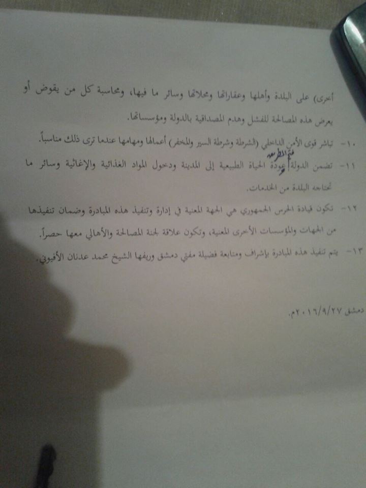 بنود مقترح مبادرة المصالحة في منطقة قدسيا والهامة