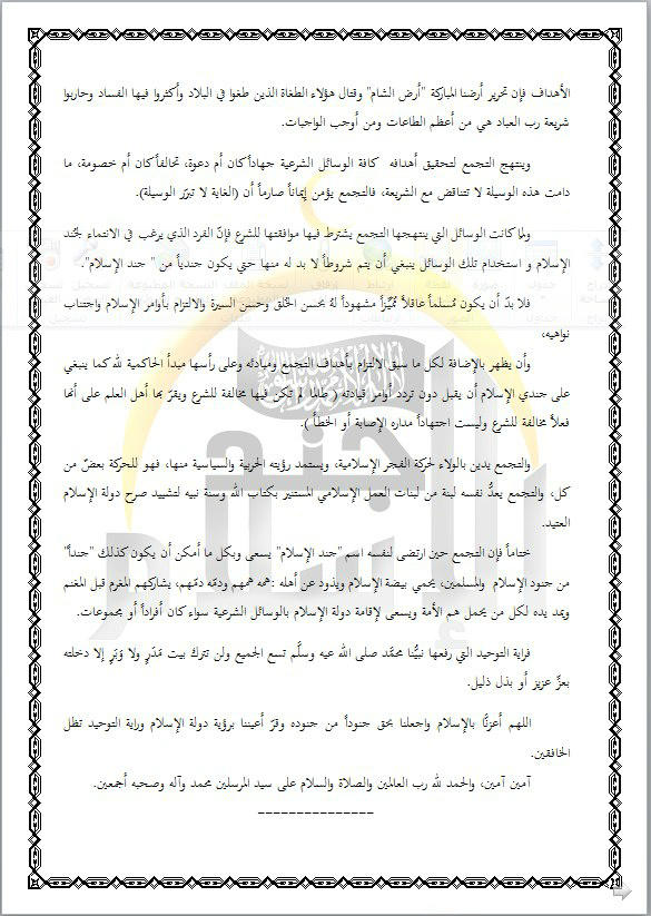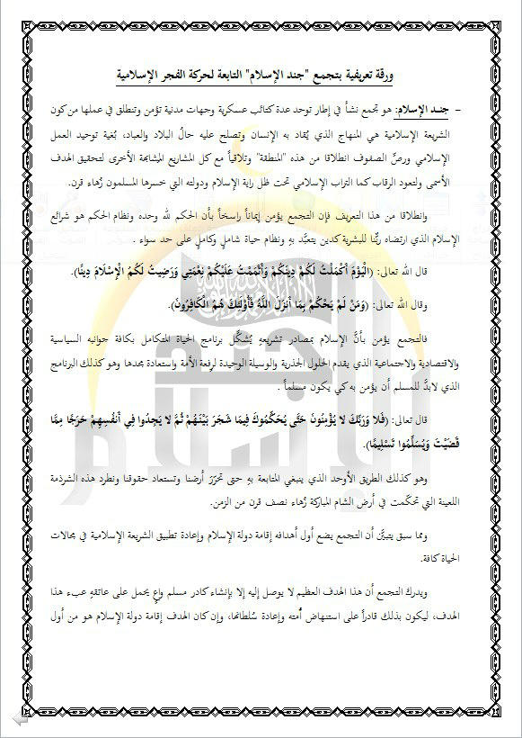 ورقة تعريفية بـ"تجمع جند الإسلام" التابعة لحركة الفجر الإسلامية