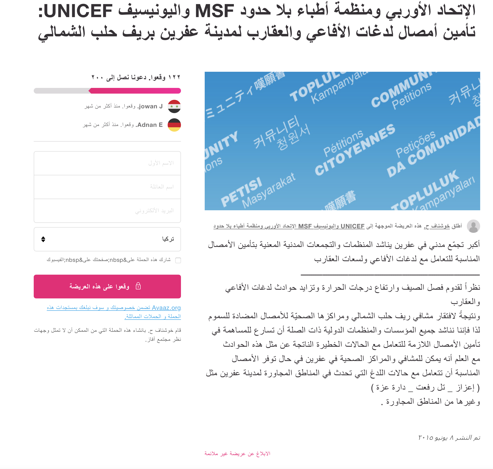 منظمات مدنية وتنظيمات سياسية كردية تابعة للإدارة الذاتية في عفرين تدعوا اليونيسيف وأطباء بلا حدود إلى مساواتها بالمنظمات العاملة في منطقة درع الفرات في تأمين الأمصال الطبية ضد لدغات الأفاعي والعقارب