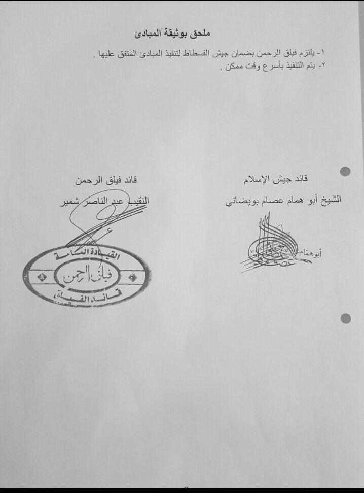 ملحق وثيقة إعلان مبادئ - اتفاق وقف الاقتتال في الغوطة الشرقية 2016