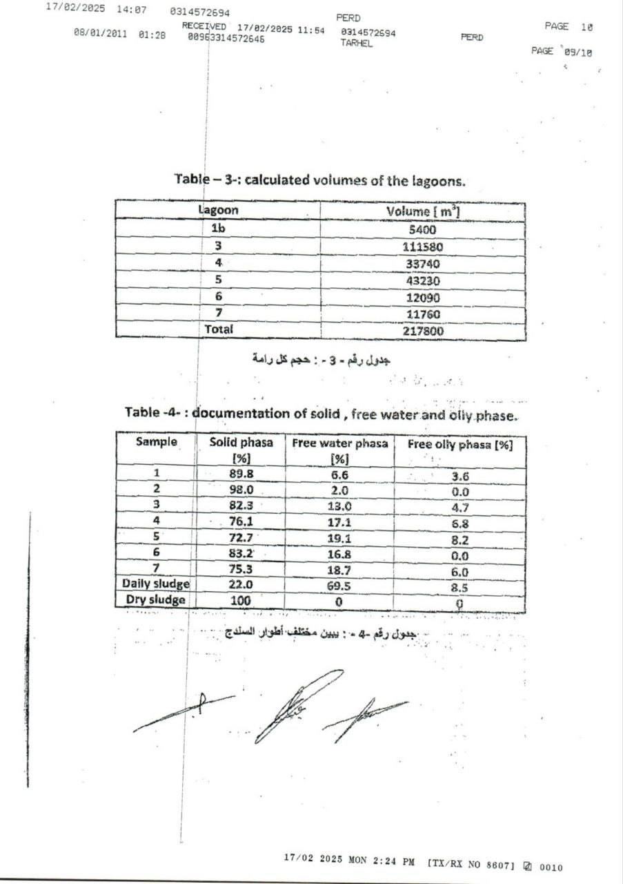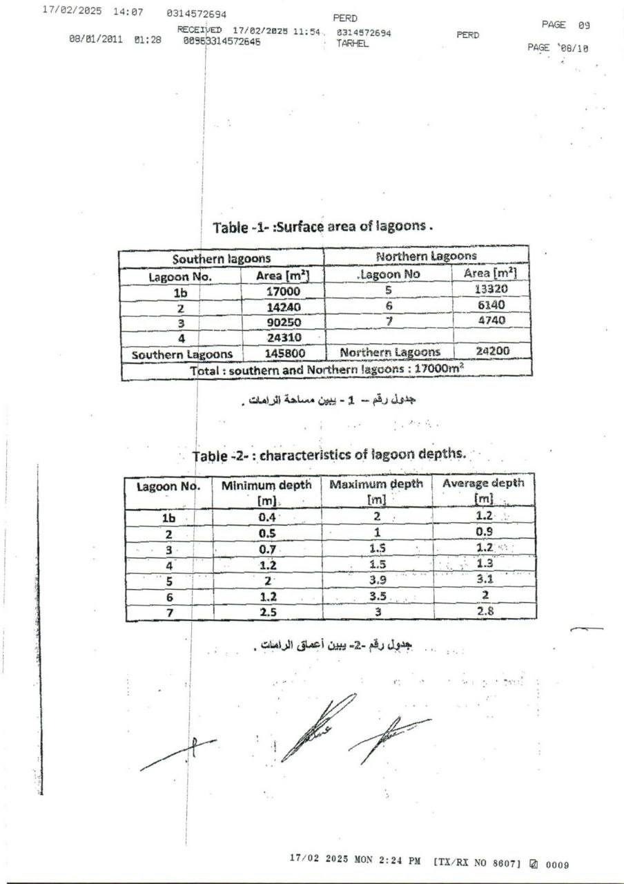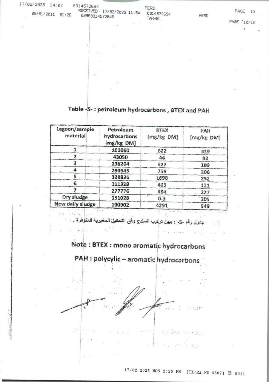 الكمية (217.000) متر مكعب من السلاح المتراكم في الرامات لتوضع في // الاغونات - كمية متجددة يومية ناتجة عن معالجة المياه الملوثة حسب الواقع اليومي السلاح في المصفاة