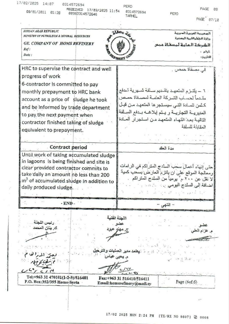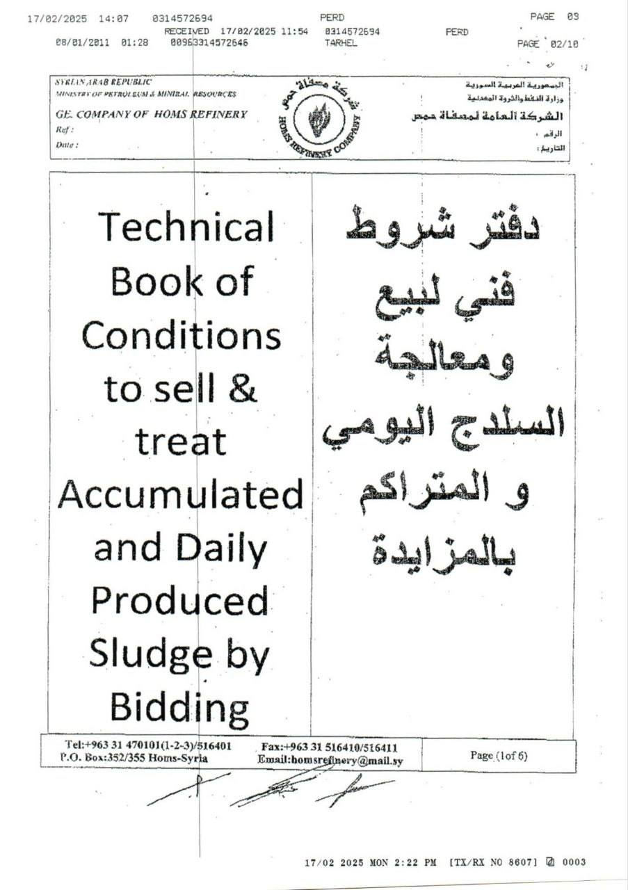 وزارة النفط تعلن عن مزايدة لمعالجة وبيع السلدج النفطي المتراكم في مصفاة حمص