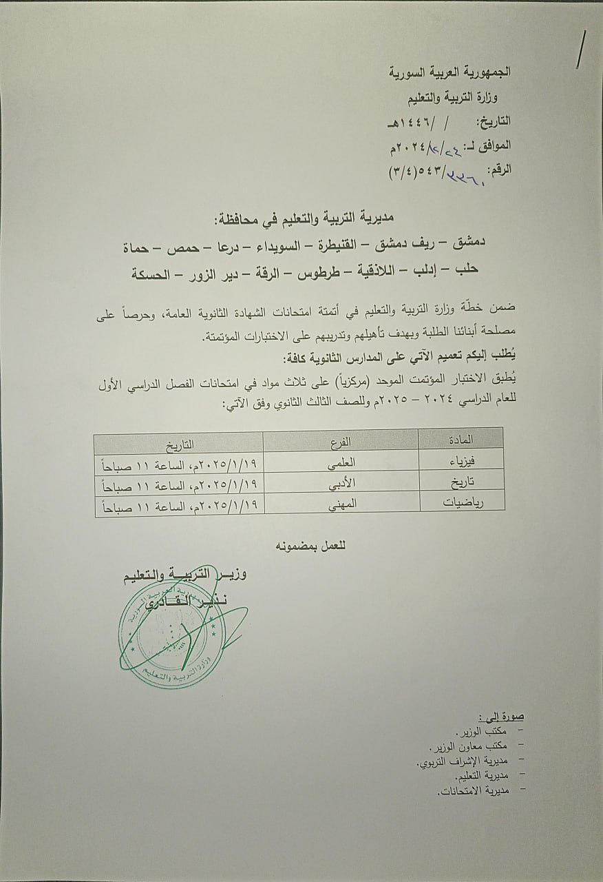 يطلب إليكم تعميم الآتي على المدارس الثانوية كافة: