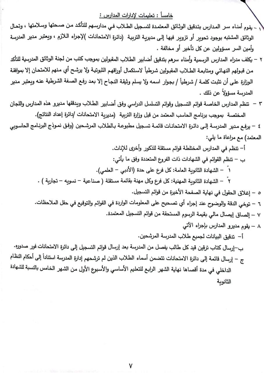 خامساً : تعليمات الإدارات المدارس :