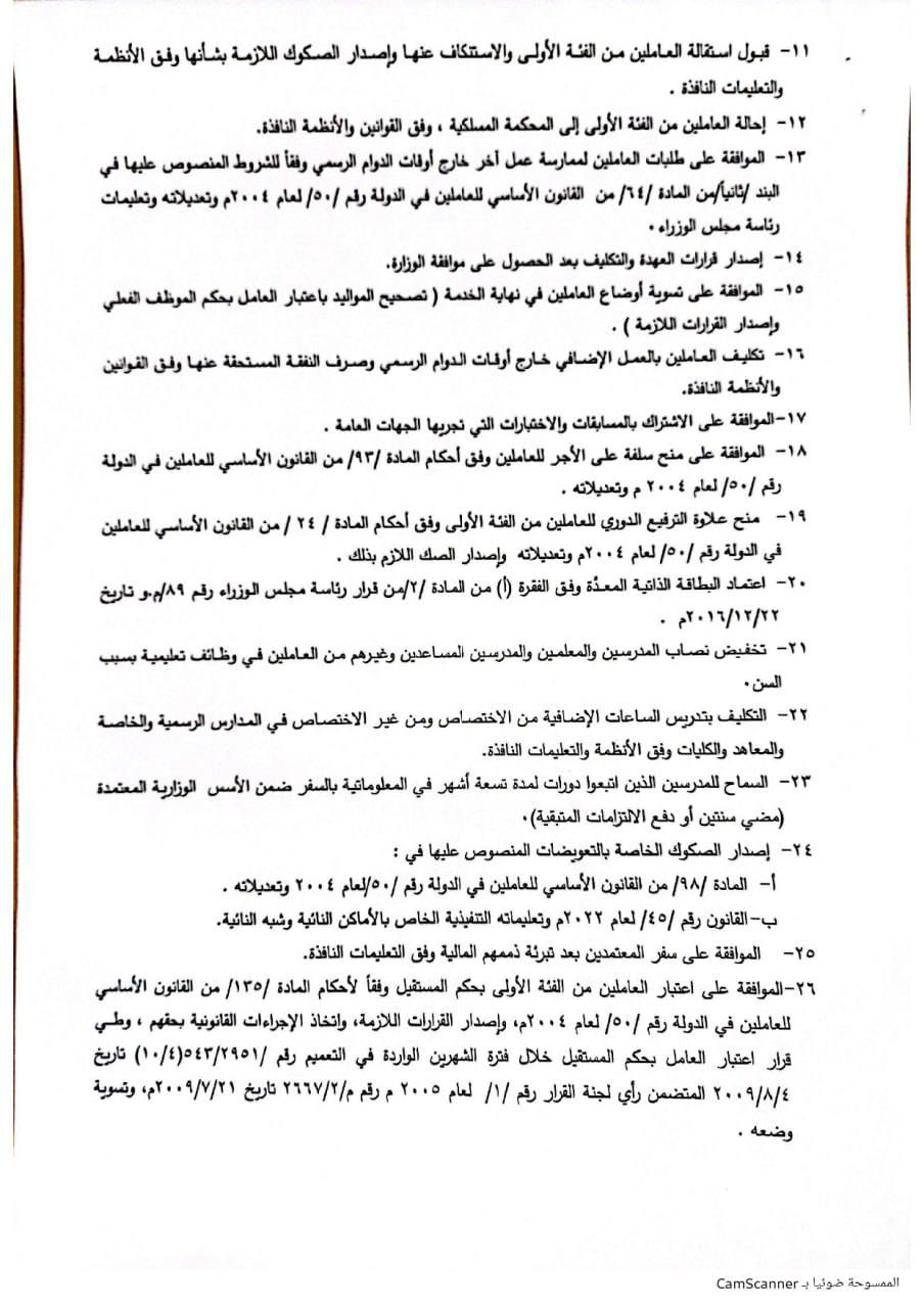 ۱۹- منح علاوة الترفيع الدوري للعاملين من الفئة الأولى وفق أحكام المادة / ٢٤ / من القانون الأساسي للعاملين في الدولة رقم / ٥٠ / لعام ۲۰۰٤م وتعديلاته وإصدار الصك اللازم بذلك .