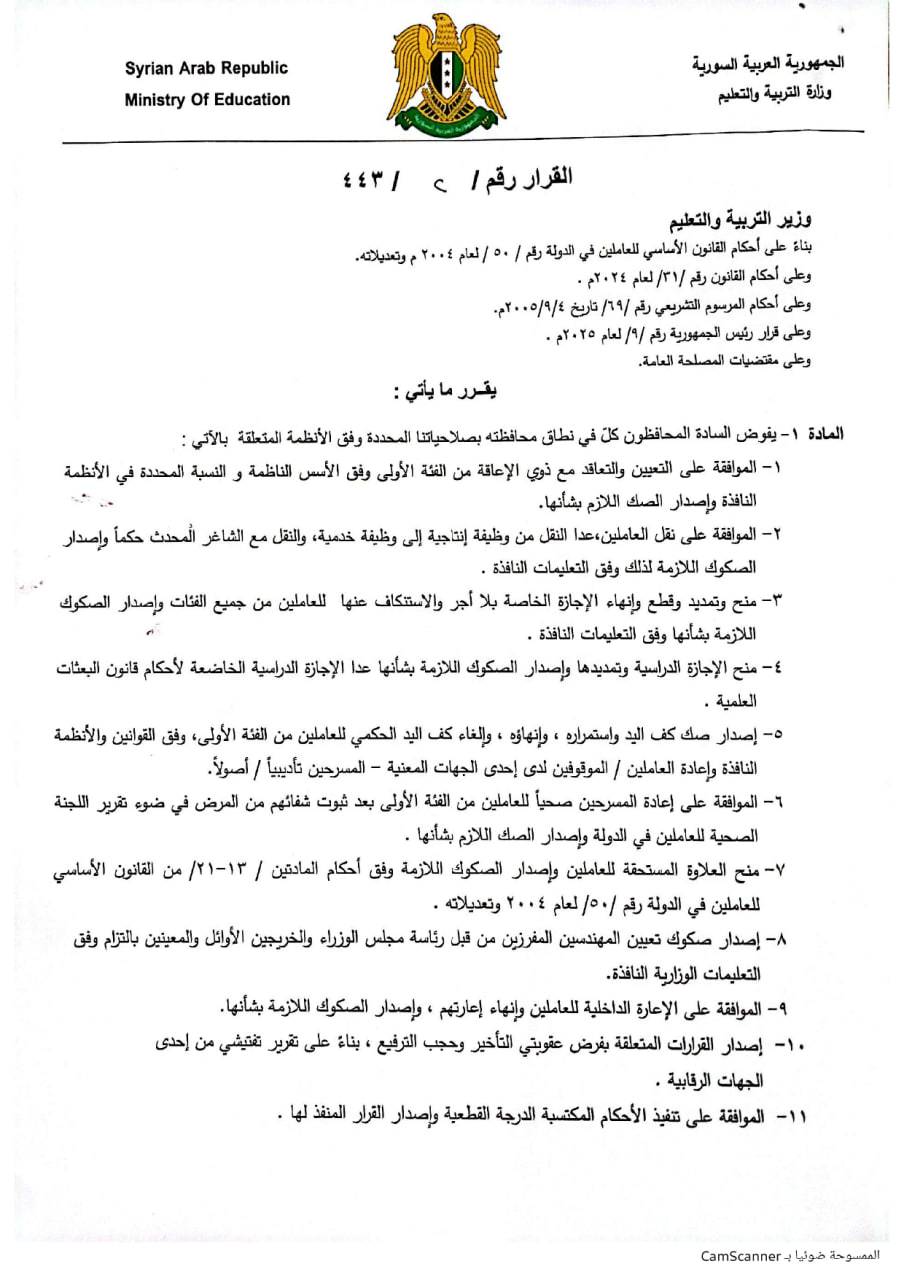 بناءً على أحكام القانون الأساسي للعاملين في الدولة رقم / ٥٠ / لعام ٢٠٠٤ م وتعديلاته.