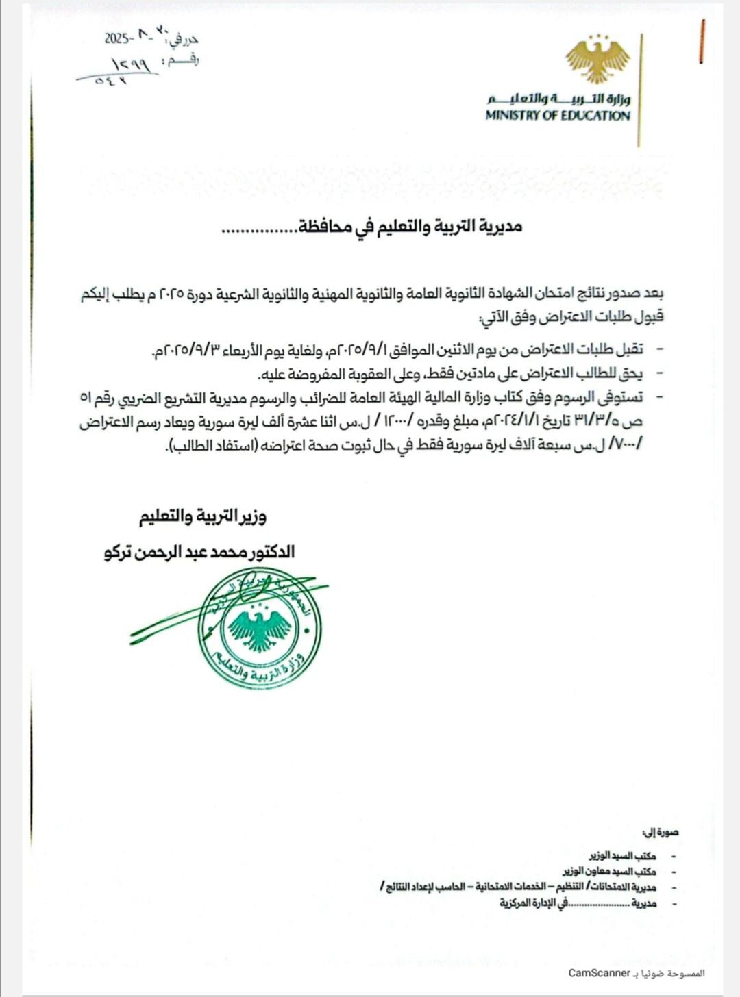 بعد صدور نتائج امتحان الشهادة الثانوية العامة والثانوية المهنية والثانوية الشرعية دورة ٢٠٢٥ م يطلب إليكم