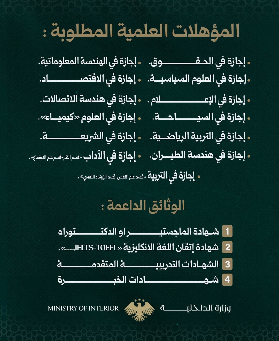 المؤهلات العلمية المطلوبة: