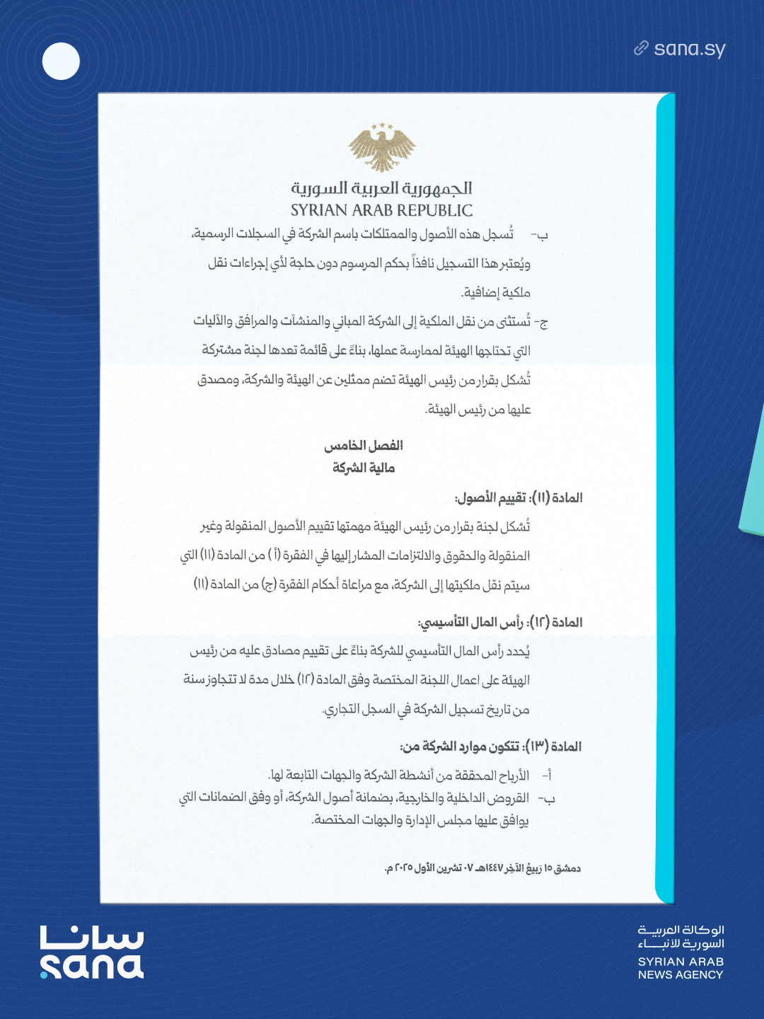 دمشق 15 ربيع الآخر 1447 هـ – 7 تشرين الأول 2025م.