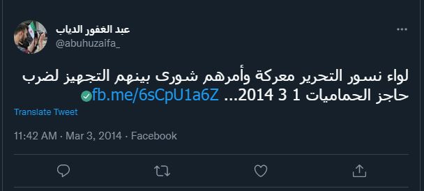 مشاركة لواء نسور التحرير التابع لاتحاد كتائب صلاح الدين في معركة وأمرهم شورى بينهم.JPGتواجد عناصر لوء نسور التحرير التابع لاتحاد كتائب صلاح الدين في مورك.JPGكود الذاكرة السورية