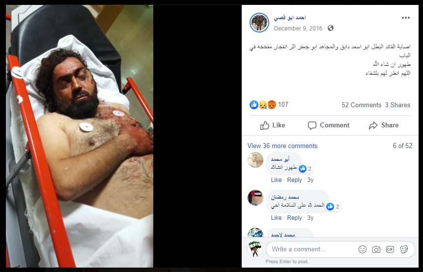 في 9 كانون الأول/ديسمبر 2016 أصيب أبو أسعد في انفجار مفخخة في مدينة الباب نجا منها بأعجوبة. بعد تضخم أعداد كتيبته تحولت إلى لواء عمر بن عبد العزيز، والذي يعمل حالياً ضمن صفوف فرقة المعتصم التابعة للجيش الوطني.