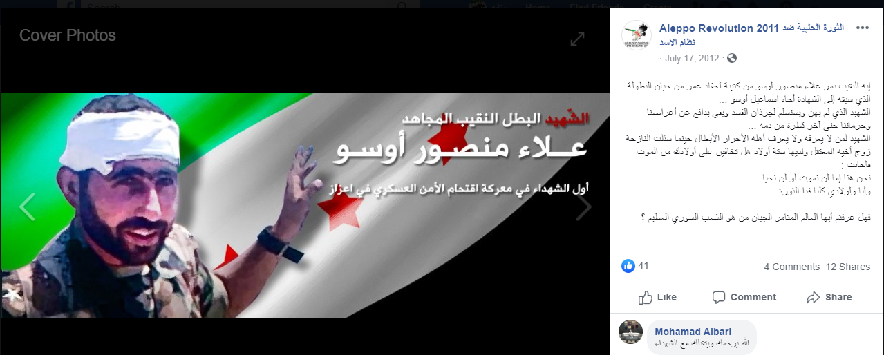 مشاركة النقيب علاء منصور أوسو النقيب نمر قبل مقتله في اقتحام الأمن العسكري في إعزاز في ريف حلب