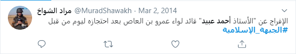 بعد انفصال كتيبة المهاجرين عن لواء عمرو بن العاص نهاية عام 2012، أُعيد هيكلة اللواء مرة أخرى تحت مسمى لواء عمرو بن العاص – جيش محمد في سوريا. أعلن اللواء عن انضمامه إلى جبهة النصرة في 4 كانون الثاني/ يناير 2014، بالتزامن مع الحملة التي شنّها تنظيم الدولة داعش على فصائل ريف حلب الشمالي، وليخوص اللواء معارك ضد تنظيم داعش تحت قيادة جبهة النصرة حتى منتصف عام 2014، حين أعلن اللواء انفصاله عن جبهة النصرة والعمل مستقلاً تحت مسمى لواء عمرو بن العاص، وليستمر الأستاذ بقيادة اللواء، حتى حلّه في نهاية عام 2016 وخروج عبيد من سوريا إلى تركيا.