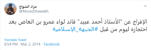 قائد لواء عمرو بن العاص في ريف حلب الشمالي.