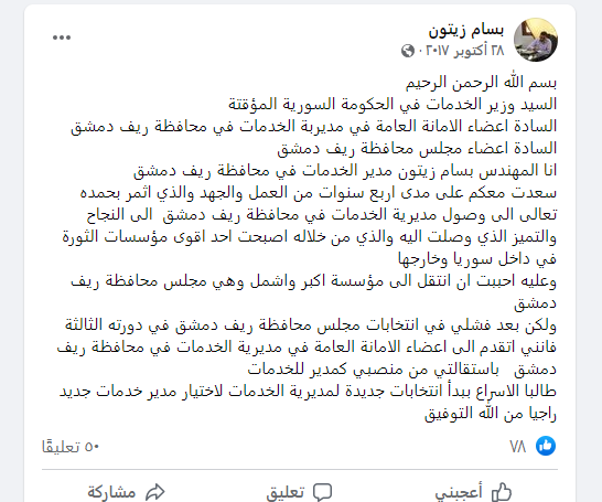 مدير مديرية الخدمات في محافظة ريف دمشق سابقاً.