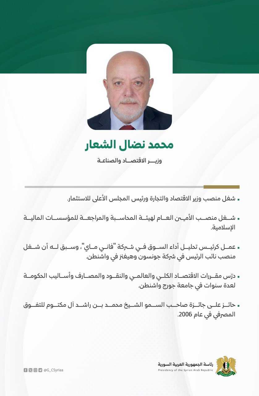 وزير الاقتصاد في الحكومة السورية الأولى برئاسة أحمد الشرع ، ووزير سابق في حكومة نظام الأسد.