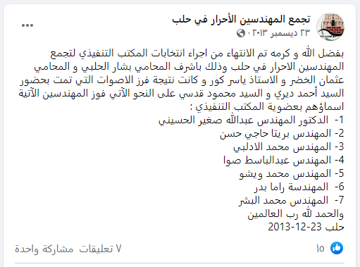 محضر اجتماع المكتب التنفيذي لتجمع المهندسين الأحرار بحلب الذي عقد بتاريخ 15/7/2015