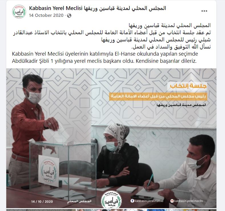 انتخب عبد القادر أحمد الشبلي رئيساً للمجلس المحلي في 15 تشرين الأول/ أكتوبر 2020، وتم انتخابه مجدداً لدورة ثانية في 13 تشرين الأول/ أكتوبر 2021.