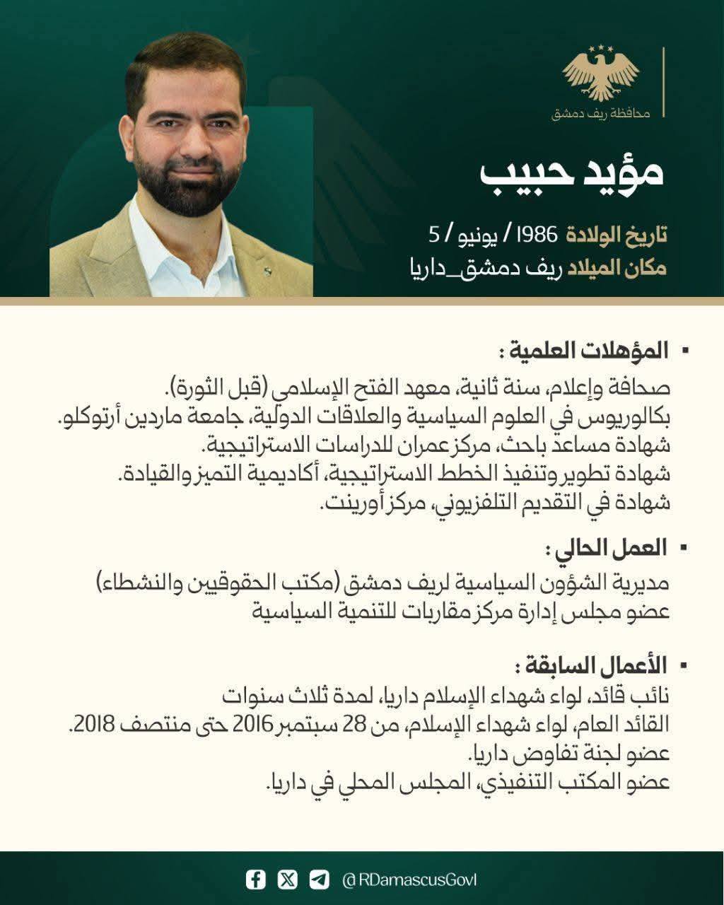 قيادة لواء شهداء الإسلام تقرر تعيين ( مؤيد أبو وائل ) قائداً عاماً للواء وتعيين ( النقيب سعيد نقرش ) مديراً للمكتب السياسي ومسؤول العلاقات الخارجية للواء