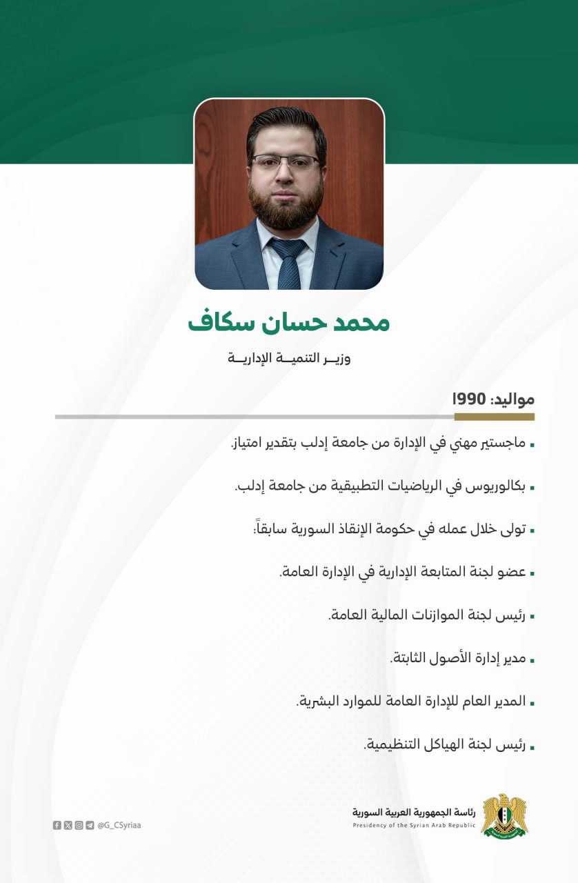 وزير التنمية الإدارية في الحكومة السورية الأولى برئاسة الرئيس أحمد الشرع منذ 29 آذار/ مارس 2025.