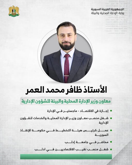 بعد سقوط النظام، عُيّن في 31 أيار/ مايو 2025 بموجب المرسوم الرئاسي رقم 52 لعام 2025 معاونًا لوزير الإدارة المحلية والبيئة للشؤون الإدارية.