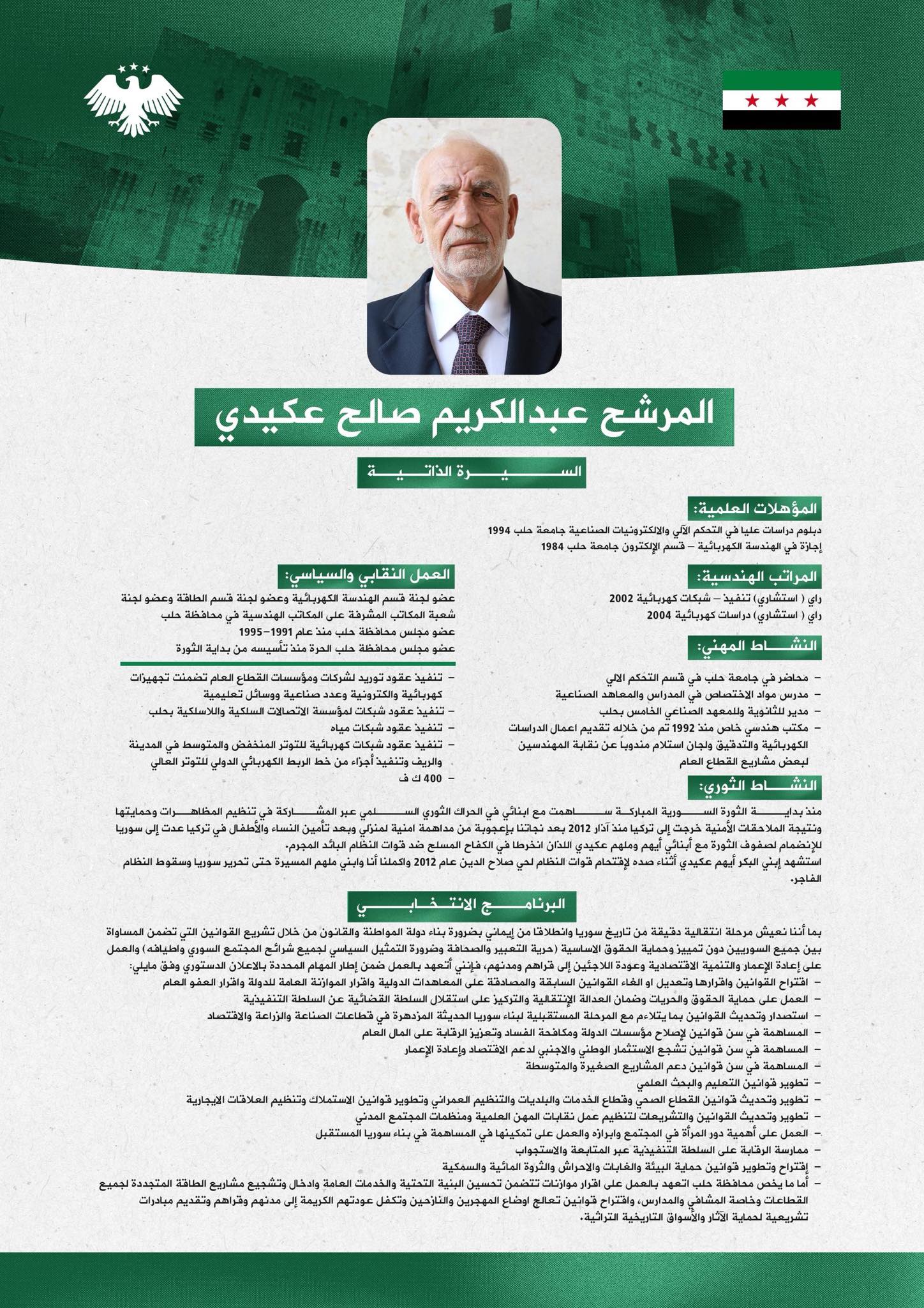 نائب في مجلس الشعب السوري منذ 6 تشرين الأول/ أكتوبر 2025.