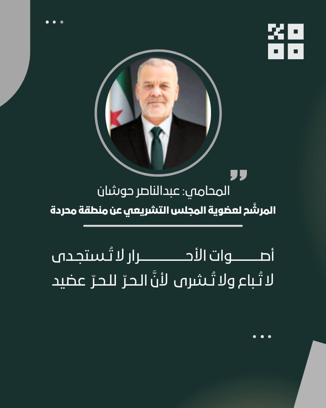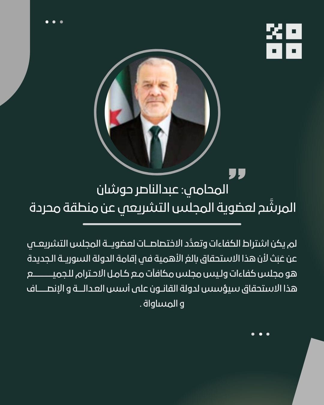 نائب في مجلس الشعب السوري منذ 6 تشرين الأول/ أكتوبر 2025.