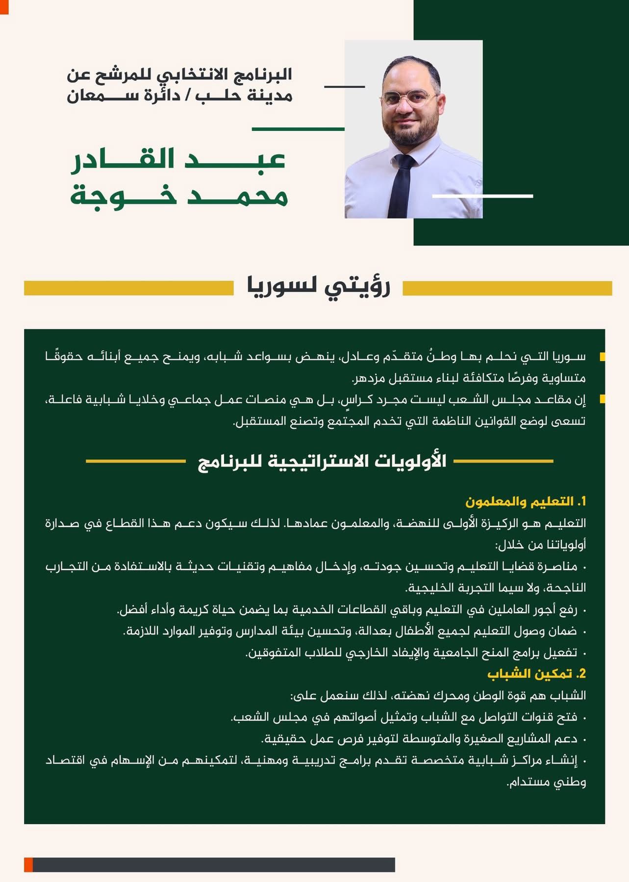 نائب في مجلس الشعب السوري منذ 6 تشرين الأول/ أكتوبر 2025 عن دائرة جبل سمعان.