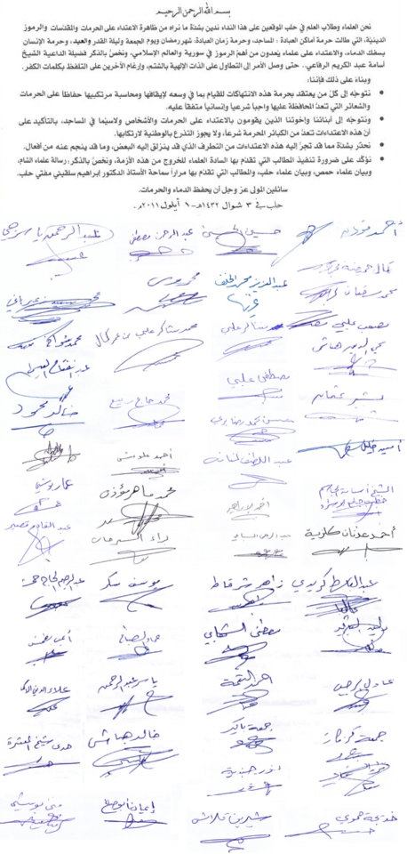 شارك الآلاف من أهالي مدينة حلب في تشييع مفتي حلب الشيخ إبراهيم سلقيني من الجامع الأموي الكبير، وتحول التشييع إلى مظاهرة هتف خلالها المشيّعون "الشعب يريد إسقاط النظام" و"الله أكبر عالظالم" و"الموت ولا المذلة ".